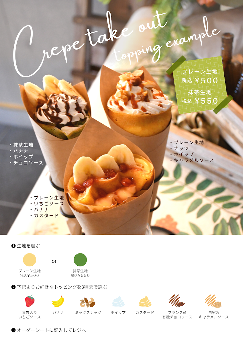 During lunchtime, the cafe transforms into a culinary sanctuary, serving a special weekday menu where you can indulge in your preferred galette along with mini crepes and a refreshing drink for JP¥1,300. The weekend brings even more choices, allowing diners to savor a full-fledged meal with galettes, crepes, or even ice cream for only an additional JP¥800 per item. With options like buttery sweet crepes that melt in your mouth, the menu offers something for everyone.